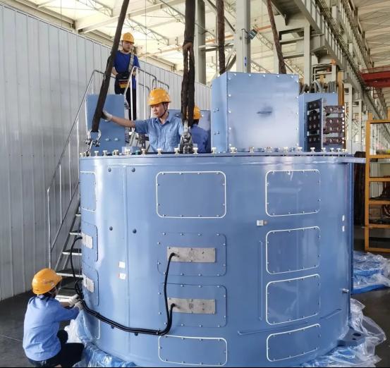 为了让各工序“同频共振”,就必须事先做好产线节拍的测算工作。董峥嵘带着车间团队从优化布局入手,他们把转子装配调到离动平衡机最近的位置,来回转运时间节省1小时;定子浸漆改用“三台同浸”模式,生产效率提升33%的同时还降低了成本;转子法兰绝缘套筒换成分瓣式,每台装配时间缩短3小时。这些看似细微的调整,像给生产线打通了“任督二脉”。