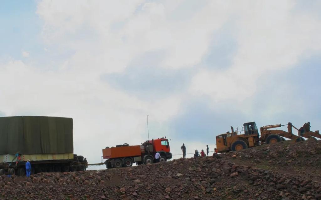 一切就绪,乌云密布的天空,宛如拉下了一块巨大的黑色幕布。车辆嘶吼着前进,大马力装载机在车辆尾部“发狠”地往前推,轰鸣声、摩擦声、应答声……在异国他乡上演着一场盛大的“交响音乐会”。