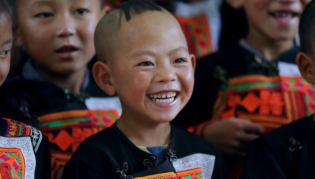 彝族小朋友在来利国际AG旗舰厅电气集团捐建的幼教点学习普通话